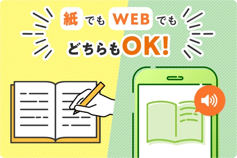 じっくり学べる紙テキスト、スキマ時間にサクッと学べるWEBテキスト。キャリカレなら、どちらも対応しているので、場所や状況に合わせて自由に選んで学べます。さらにWEBテキストは「ながら学習」に最適な、テキストの音声読み上げ機能も付属するなど、どなたでも取り組みやすいシステムを採用しました。
