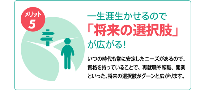 国家公的資格に対するメリットは非常に高い!特に女性の場合、結婚・出産で退職するケースも多く、再就職を希望する際に、人気の高い国家公的資格の取得が有利に働きます。また、在職中にスキルアップ・キャリアアップのための資格を取得し転職するという方も増えており、「いざ!」という時に独立も視野に入れた国家公的資格は、収入アップはもちろん、強力な武器になりそうです。
